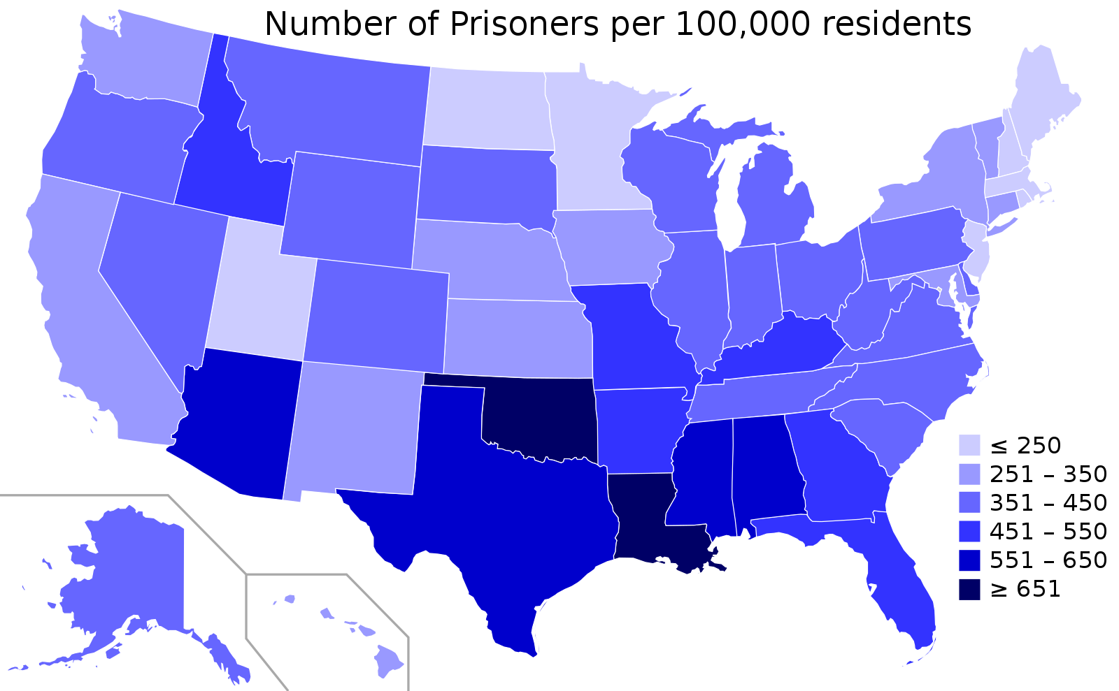 The increase in the national incarceration rate is not only a problem of the federal government. Many states have also seen an increase in the incarceration of their respective populations in recent history – particularly in the South, where in some instances prison populations are triple compared to that of other states.