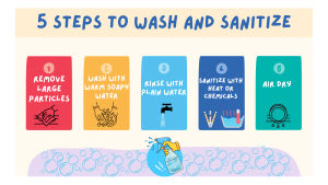 Once the detergent is rinsed off, the item should then be sanitized with either heat or a chemical.